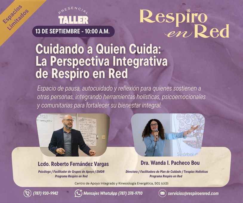 Los espacios son limitados, para más información deja mensaje en el (787)930-9942, escribe a servicios@respiroenred.com o al WhatsApp de CenAIKE: (787)378-9710.